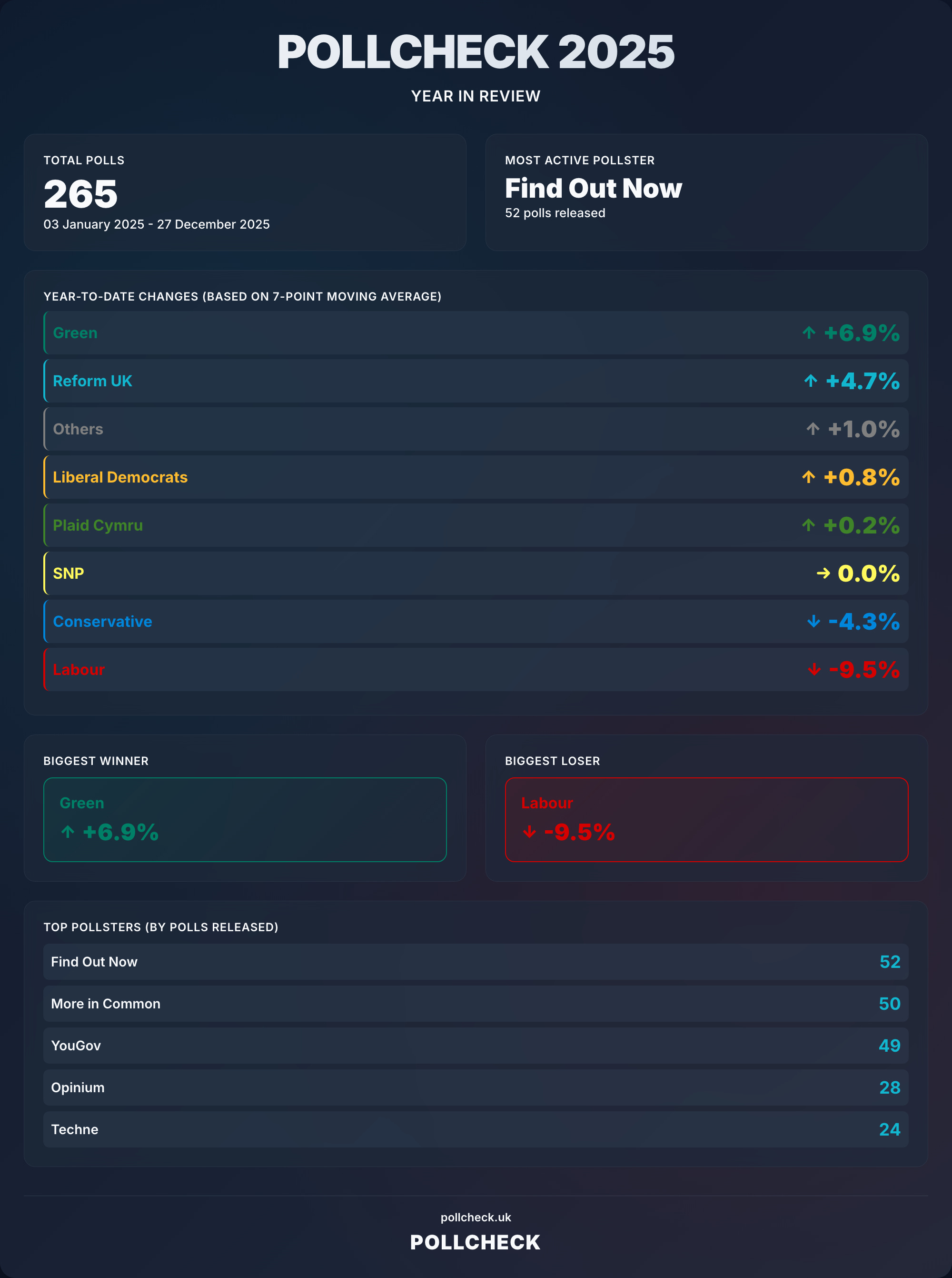 The polling picture today looks very different than it did on 1st January 2025. Let’s look at the top parties changes over the year.